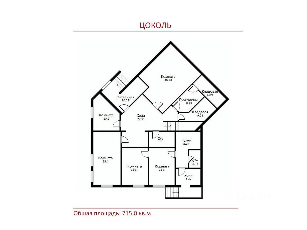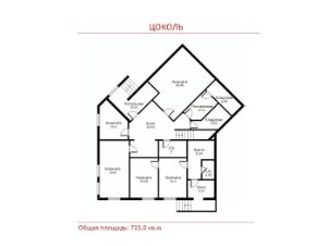 Цоколь: кинозал, хол.кладовая, постирочная, кладовая, котельная, холл, 4 комнаты, 2 с/у, кухня, холл.