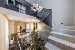 2 этаж хозяйская спальня потолки 4.5 метра, со своим с/у с подогревом стен и полов, сантехника TECEspring, две спальни с панорамным остеклением, гардеробная с системой Mr.Doors, с/у.