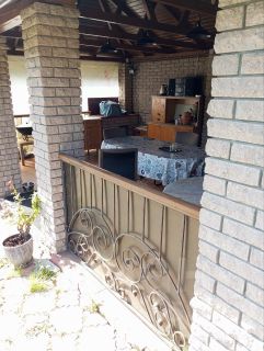 Участок 16.5 сот. ровный ухоженный, обустроен, по периметру огорожен забором на ленточном фундаменте. На въезде бетонная площадка,перед домом то же большая площадка на 4 машины.