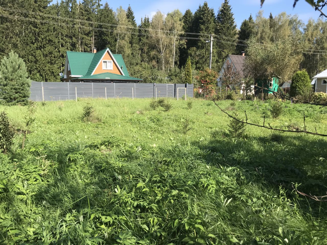 Ровный участок прямоугольной формы для постройки жилого дома или дачного дома. По адресу можно прописаться. СНТ окружен лесом. Подъезд по асфальтированной дороге. На участке растут несколько молодых деревьев.