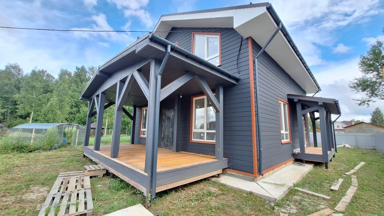 Дом построен по финской каркасной технологии. Использованы только качественные материалы, строили строители - мастера своего дела! Стены толщиной 20 см. Крыша и пол так же утеплены. Фундамент дома и бани полноценная лента, углублением 1.5 метра, с дополнительным укреплением бетонными сваями. Крыша металлопрофиль. Обшит премиальным металлосайдингом Экобрус Grаnd linе 0.45 Drар с плёнкой Rаl 7024 мокрый асфальт.