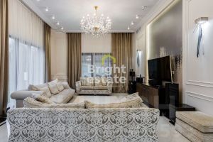 Одноэтажный дом выполнен с отделкой под ключ, современный интерьер, премиальная мебель и материалы создают атмосферу уюта и элегантности. Терраса с мебелью приглашает к отдыху на свежем воздухе, фасад облицован кирпичом, все коммуникации центральные.