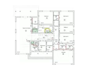 котельная с постирочной, гардеробная, санузел, просторная кухня-гостиная с зоной отдыха, кабинет и четыре спальни с собственными гардеробными и санузлами.