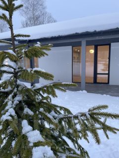 Очень теплый и уютный. Полностью готов к проживанию. Всё время с температурой 22град внутри. Никаких сосулек из-за потери тепла.