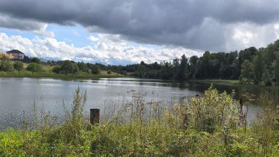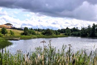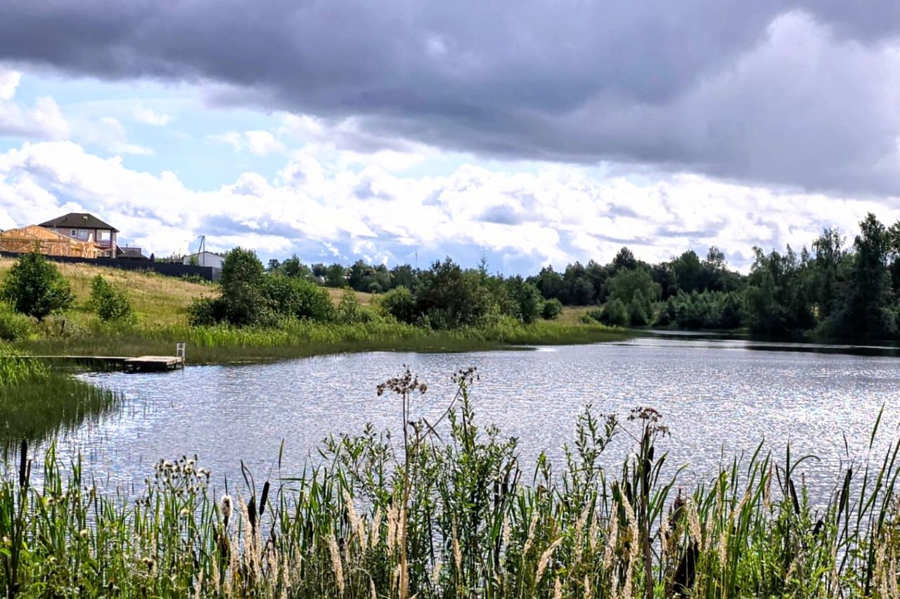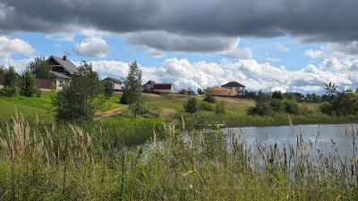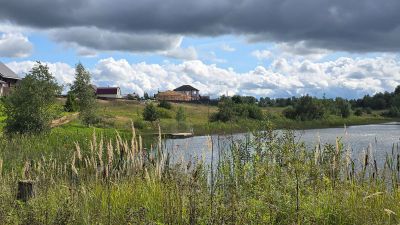 1ая линия у ОЗЕРА. участок 12сот. небольшой уклон к озеру. ЭЭ, газ коммуникации по границе. дорожное полотно "до ворот" щебень+гравий+битум. машина на фото стоит на участке. соседи построились. оборудованный пляж: песок+пантон с лестницей. от ж|д ст. Шаховская 15мин, автоб.остановка у въезда в посёлок. магазины 5ка, дикси, озон и т.п. пешком. пос. Шаховская: ж\д, пожарная, больница, школы. координаты: 56.055804, 35.494108
