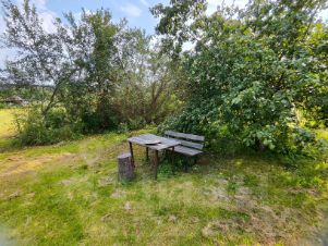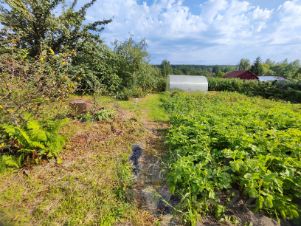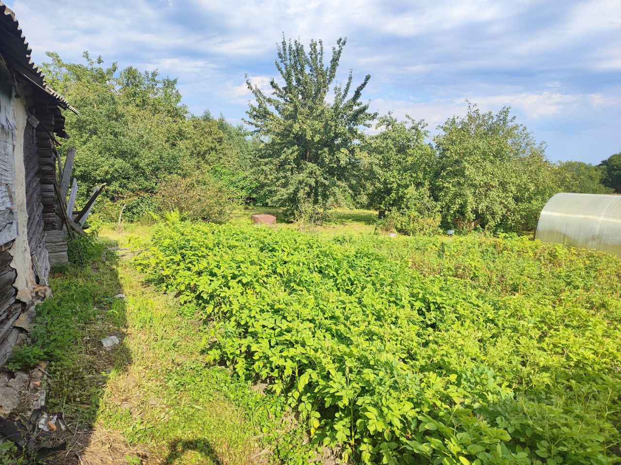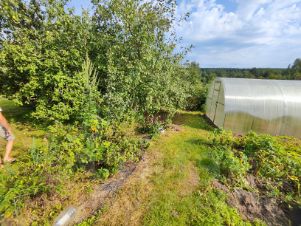-1/2 участка обработана( плодовые деревья, кустарники,картошка, овощи, установлена теплица,есть зона отдыха)
