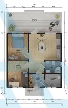 * Кухня-гостиная 20 м² с дневным светом и выходом на террасу