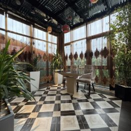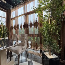 Зимний сад (13,69 м²) с панорамными окнами и обеденной зоной для отдыха в любое время года.