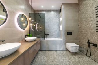 Удобная планировка подойдёт для постоянного проживания семьи и приёма гостей. Здесь четыре спальни и одна мастер-спальня, четыре санузла.
