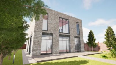Строящийся двухэтажный дом в коттеджном поселке "Валенсия".