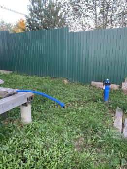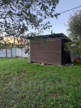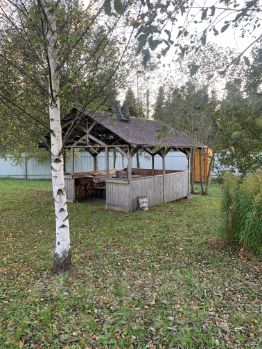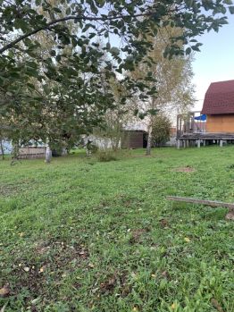 На участке построен дом 6х6 с мансардой, фундамент рассчитан на дом 9х10. Есть хозблок 2х4, беседка 3х4, уличный туалет, скважина 23,5 м, Интернет, забор 2 м. Растут березы и дуб. Участок имеет естественный уклон.