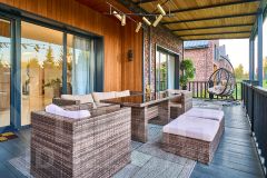 Коттеджи в Yard Village имеют современный дизайн и функциональную планировку, которая позволяет использовать каждый квадратный метр пространства максимально эффективно. В каждом доме есть уютная гостиная, просторная кухня, спальни, ванные комнаты и терраса с прекрасным видом.