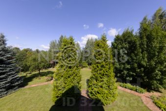 Просторный участок со взрослыми хвойными и лиственными деревьями, уложен газон, вымощены садовые тропинки, организована парковка на 4 авто, установлена система автоматического полива, уличное освещение.