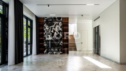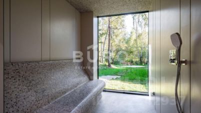 нижний этаж : 2 спальни персонала, кухня, су, постирочная , кладовка. спа-зона с кухней , хамам и сауна со стеклом в пол и видом на участок.