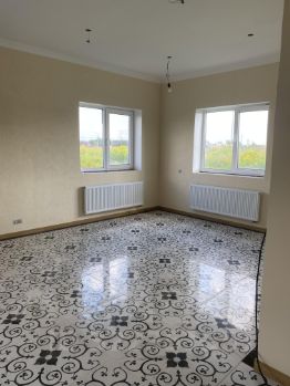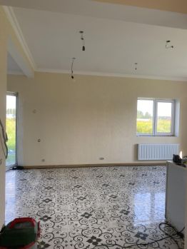 По всему дому произведена укладка труб теплого пола, развешены радиаторы.