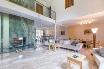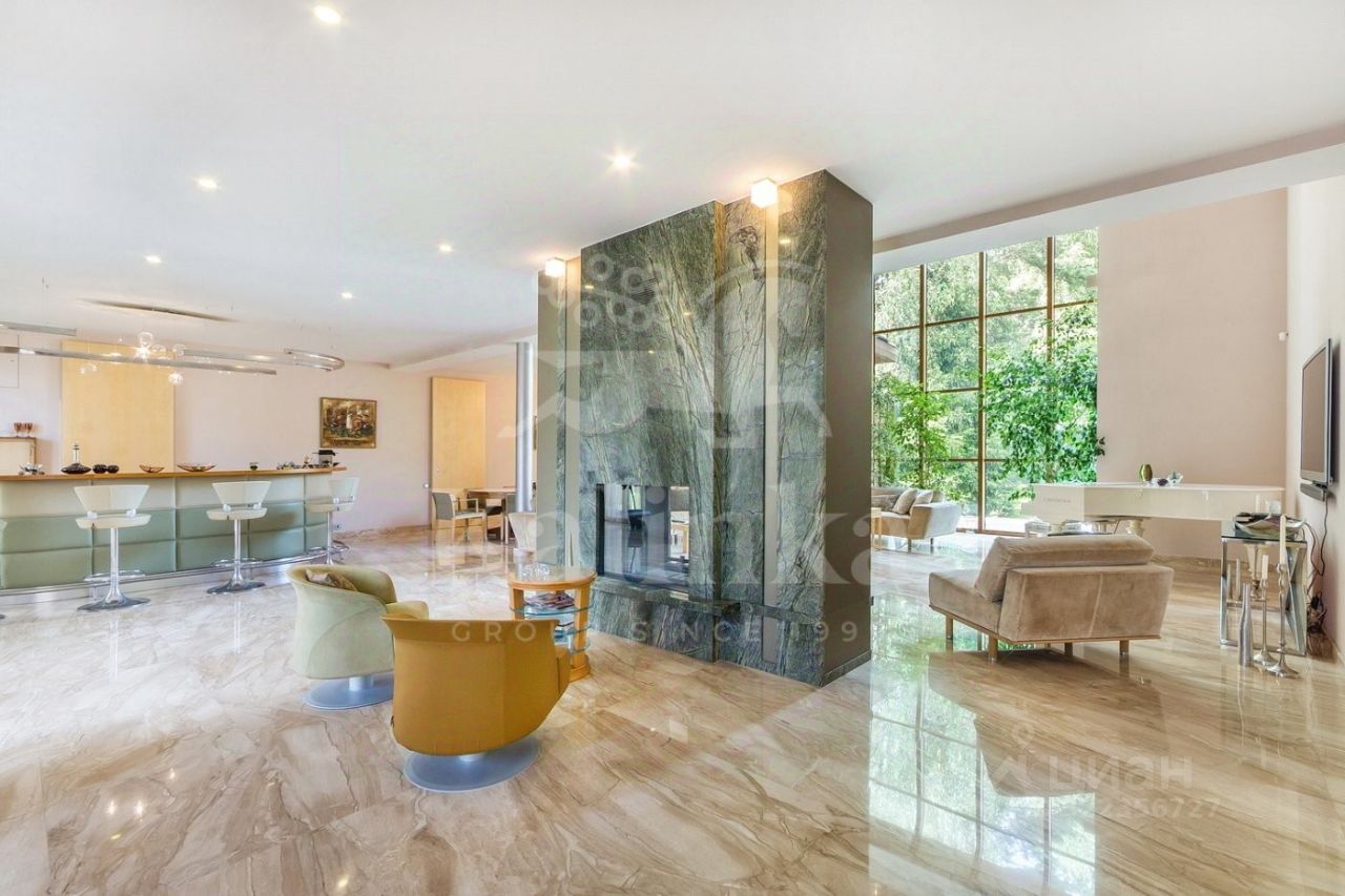 1 этаж: прихожая, холл, гардеробная, гостевой санузел, кабинет с выходом на террасу, лифт, гостиная с камином и вторым светом, зона столовой, барная зона с функцией кухни, кабинет/спальня с санузлом, гостевой блок: спальня с санузлом и гардеробной.