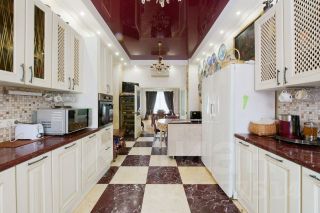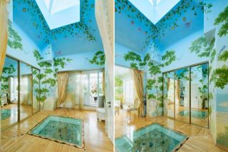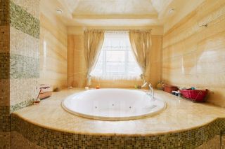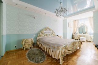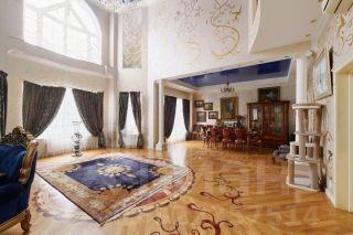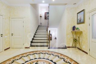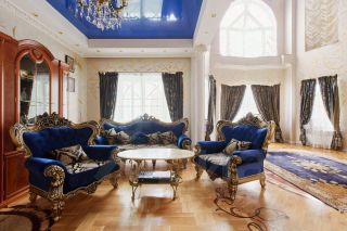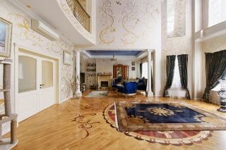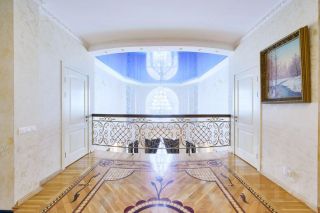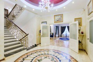 В доме выполнен дизайнерский ремонт: ручная роспись сусальным золотом, на полу мрамор и дубовый паркет, деревянные окна и мраморные подоконники.