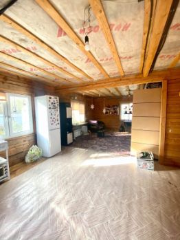 На первом этаже коридор, большая, просторная кухня, зал, спальня, бойлерная, санузел совмещённый (есть ванна и душ). Второй этаж без отделки, также утеплен, есть два окна ПВХ.