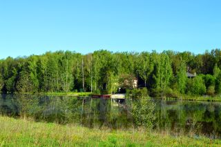 Участок на берегу реки Никажель в новом современной коттеджном посёлке имеющим свой песчаный пляж. Окружен лесным массивом.