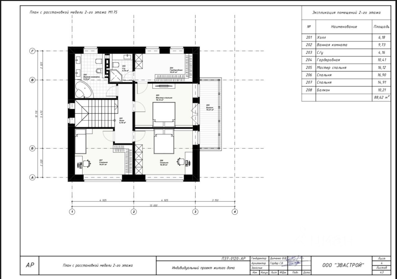 2-этаж: два большая спальня по 20кв/м, 1 детская 16 кв/м и маленькая комната (можно использовать как офис или гардеробная) 12кв/м, санузел под душевую 5 кв/м.