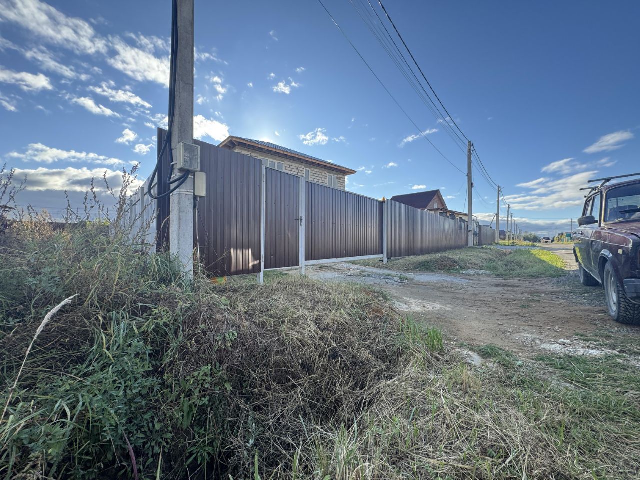 Участка: 6.5 соток. 3 канализационный септик установлен. И колодец сладкая чистая вода работает через насос. За час 1.5 тонны воды наполняет. Еще при продаже дома оставлю бытовку (купил новая), уличный туалет покупная. Забор профнастил установил буква Г. А соседний сторон сеткой огорожен. Калитка, а ворота автомат. Газ этот год должны проводит