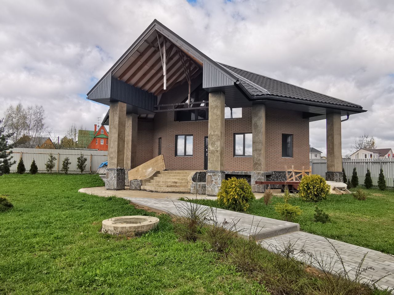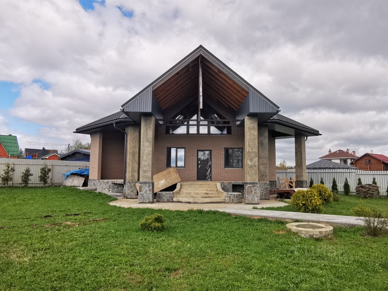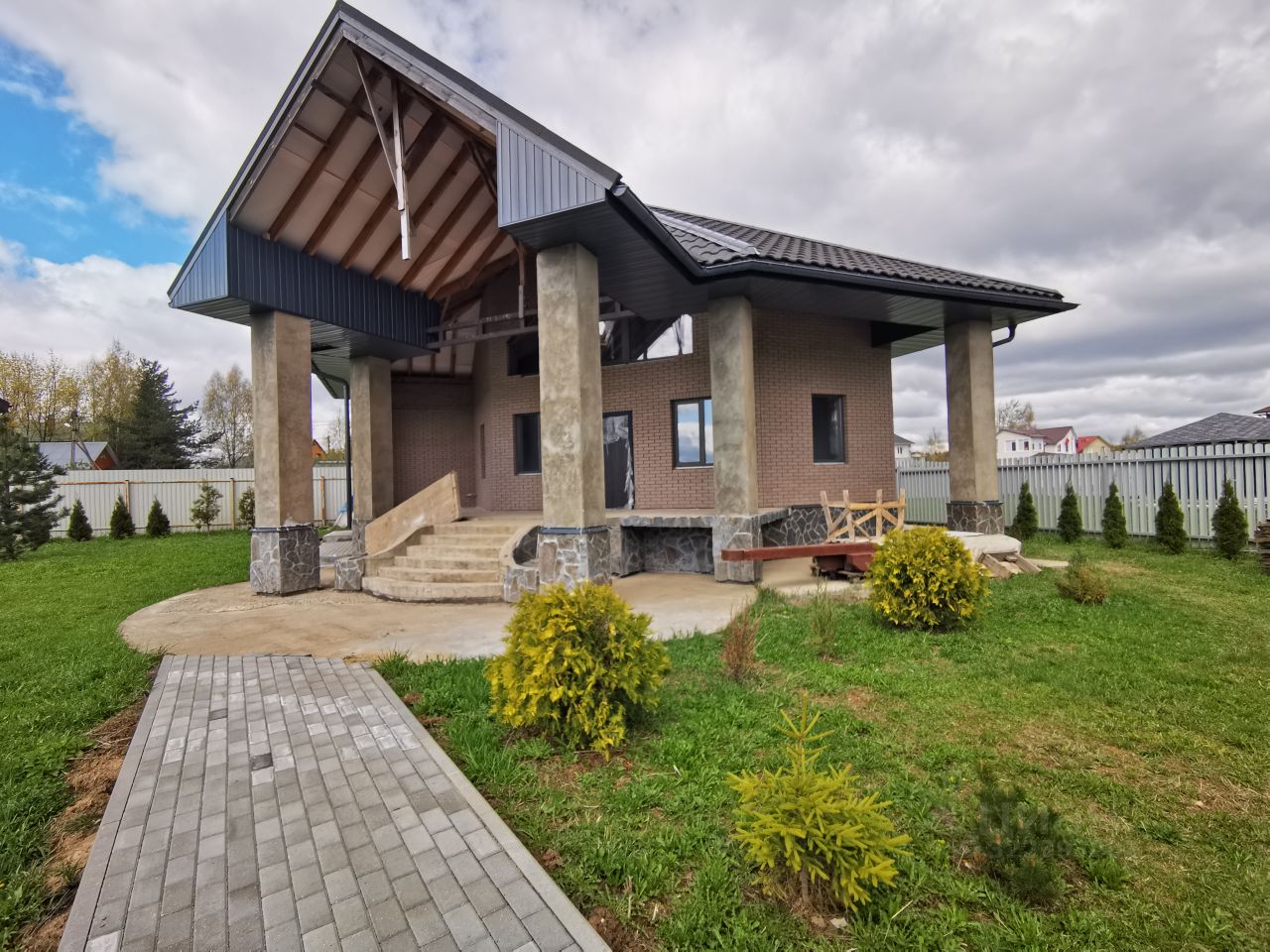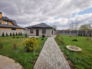 Участок площадью 15 соток, правильной формы. На участке построен 2-х (двухэтажный) Дом-баня 136 м.кв. с теплым гаражом 55 м.кв. на 2 машино-места построенный в 2018 году. Дом кирпичный, высота потолков: 1-й этаж- 3.20 см, второй - 2.90 см. Все коммуникации заведены в дом. Ограждение дома облицовано натуральным галтованным камнем. По периметру дома с внутренней и внешней стороны высажены туи.