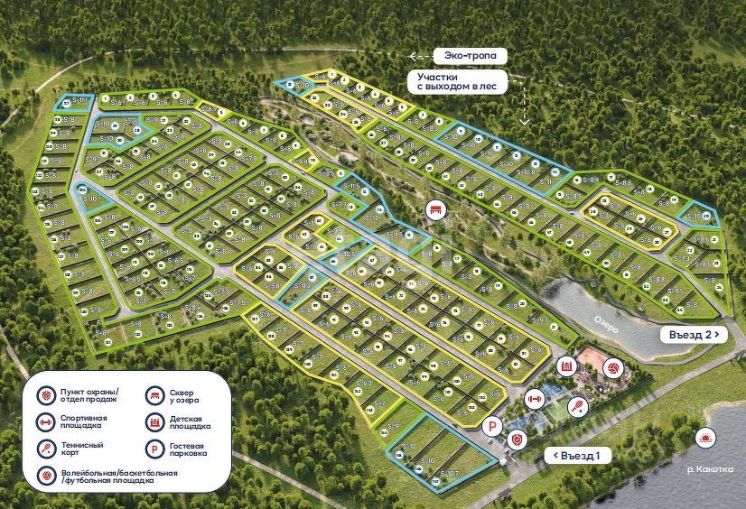 Экопоселок окружает лес с трех сторон, в распоряжении жителеи огромная природная зона с вековыми деревьями, лесными тропинками и потрясающе красивым ландшафтным дизаином.