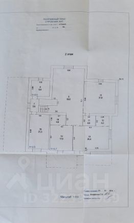 Второй этаж — четыре спальни (32 м², 26 м², 21 м², 21 м²), гардеробная, ванная комната, вторая гостиная.