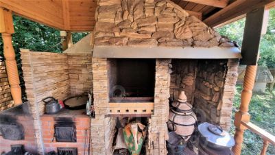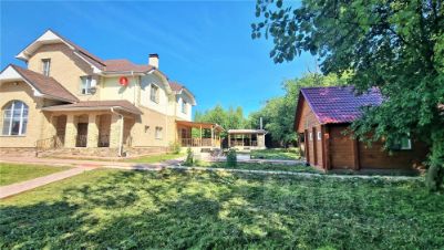На участке вольер для собак. Пристроен теплый гараж на два автомобиля с входом из дома, баня из бруса с комнатой отдыха. Мангальная (плов, шашлык, тандыр). Территория огорожена забором. По контуру дома установлено видеонаблюдение.