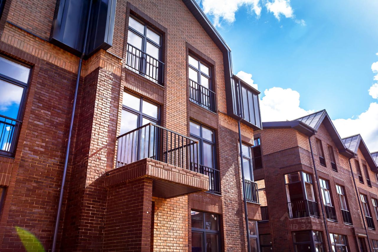 Торцевая секция дома с эффектным угловым остеклением и увеличенным участком. Общая площадь таунхауса 135 кв. м (два этажа 90 кв. м + 45 кв. м мансарда). ЗЕМЕЛЬНЫЙ УЧАСТОК 2,11 сотки.