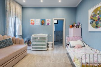 2 этаж: хозяйская спальня с гардеробной и ванной комнатами, детская спальня с санузлом, кабинет/дополнительная спальня со своим санузлом