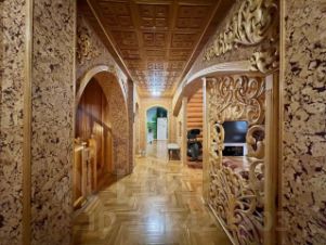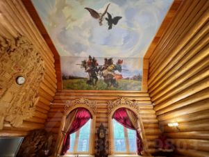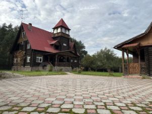 Дом построен в 2003 году из соснового оцилиндрованного бревна, фундамент железобетонный: ленточно-заливной с монолитной плитой, облицован натуральным камнем (выполнено прочное основание из армирующей сетки с использованием морозостойкого клеевого состава). Высота потолков 2,8- 6 метра, во всём доме натуральный паркет из цельного дерева. Крыша покрыта металлочерепицей. Так же на участке два гостевых дома из соснового оцилиндрованного бревна, один из которых можно переделать под баню. Второй со своей мангальной зоной. Забор: деревянный частокол с каменными столбами. Ворота для заезда во двор автоматические откатные. Участок ровный и правильной формы. Высажены: газон, слива, яблони, груша, крыжовник, смородина. Ежегодные платежи за уборку снега, вывоз мусора, охрану, видеонаблюдение и обслуживания территории составляет 40 000 рублей.