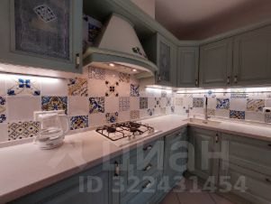 Дизайн кухни из массива дерева выполнен в стиле Прованс, очень приятного мятного цвета. Кухня с большой рабочей поверхностью и максимально вместительным объемом мебели.