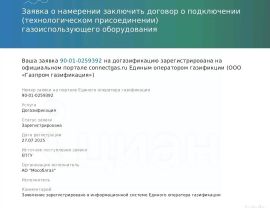 на исполнении АО "Мособлгаз" заявка на технологическое присоединение к газовым сетям (бесплатная программа догазификации)