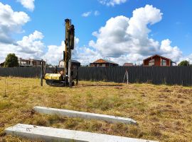 фундамент : мощные железобетонные забивные сваи 300*300, высота 4 м (27 шт.)
