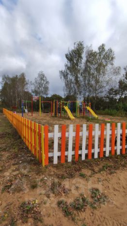 Детская площадка и спортивная зона с уличными тренажёрами.