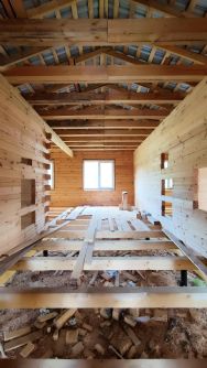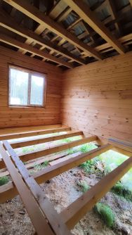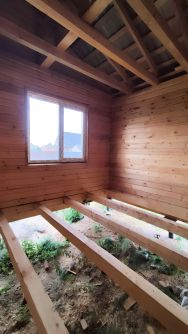Дoм строился летом 2024 г. из профилированного бруса 140х145 мм, стоит на железных винтовых сваях 80 мм, вкручены на глубину 4 м., крыша металлочерепица, пластиковые окна. Планировка: кухня-гостиная 23,9 кв.м, СУС 6,3 кв.м., топочная 4,6 кв.м., холл 11,6 кв.м., тамбур 5,2 кв.м., три спальни 10,9-12,5-15,8 кв.м. Коммуникации: электричество 15кВт, септик, скважина 8м.