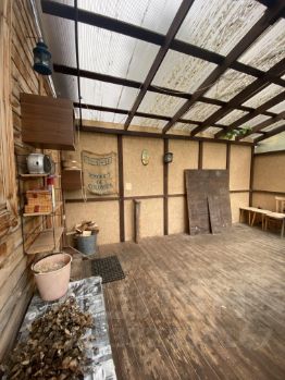 На участке находится колодец, теплица, баня с мангальной зоной и комнатой отдыха, технический сарай, место для автомобиля, есть фундамент для постройки дома.