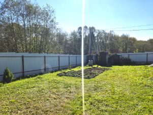 Участок: 10 соток правильной формы. Огорожен железным забором.