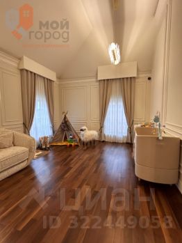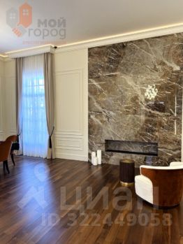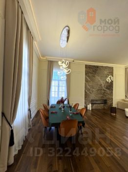 В планировке предусмотрены 3 спальни, гардеробные, кухня, столовая, гостиная с камином и 3 санузла.