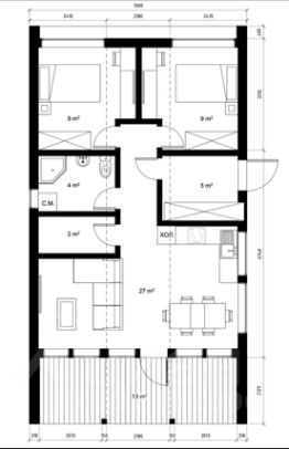 - 2 спальни по 9 кв.м.с панорамными окнами;