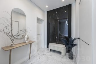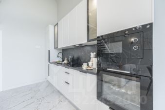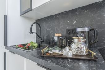 Стильная кухня полностью оборудована, вся техника встроенная: холодильник No-Frost Hyundai, полноразмерная посудомоечная машина DeLonghi, индукционная варочная панель Weissgauff, духовой шкаф с телескопическими направляющими и каталитической системой самоочистки Weissgauff, микроволновая печь Weissgauff, вытяжка Monsher.