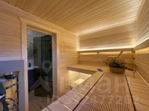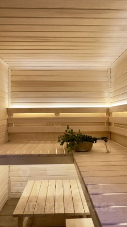 Сауна 2,4м в длину, можно лечь на полок в полный рост.
