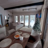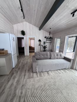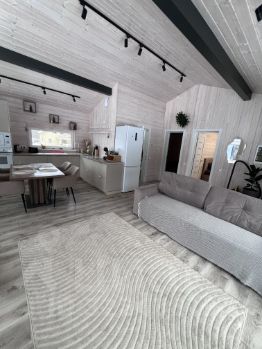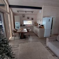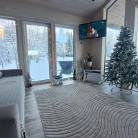 Дом полностью готов для круглогодичного проживания новой счастливой семьи!), очень тёплый и комфортный. Планировка: большая кухня-гостиная 26кв с панорамным остеклением и две раздельные спальни с окнами в пол. Совмещённый сан-узел, с душевой кабиной. Оставляем полностью всю мебель и технику.