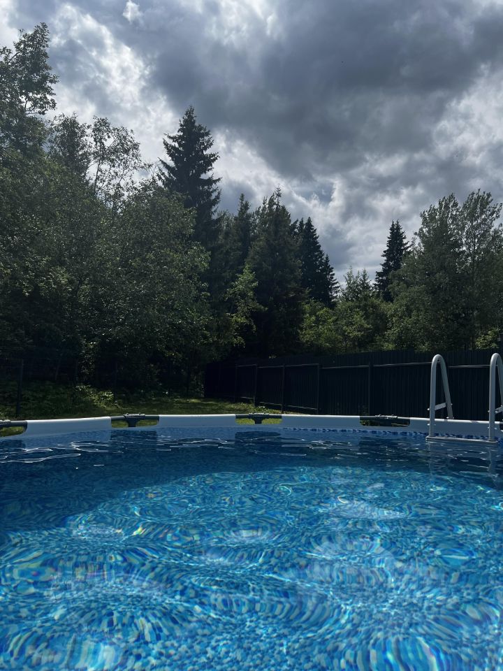 Участок: По периметру участка идёт глухой забор с откатными воротами 5м(можно установить дистанционное открывание с пульта, разводка для неё выведена, до делать не успели уже) со стороны леса прозрачный 3D забор, вид на лес шикарный(в данный момент лес чистим, под собственную детскую площадку). На территории участка стоит банный чан(прекрасно купаться в горячей воде под открытым небом), каркасный бассейн 3*66 на 1*2,бассейн в комплекте песочный фильтр, пылесос и скимер. Остаётся ещё большая территория пустой, можно поставить беседку или баню по желанию) Так же остаётся большой хоз-блок, бытовка, с двойным утеплением мин. ватой.