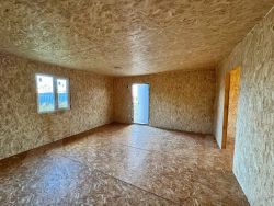 Каркасный дом на свайном фундаменте в черновой отделке.