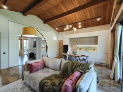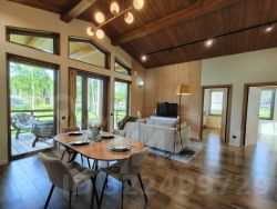 Одноэтажный жилой дом из Правильных SIP-панелей SIPWOOD. доме рациональная и продуманная планировка. На небольшой площади в 116 м мы разместили все необходимое для комфортной загородной жизни семьи из 4-х человек: просторную двухсветную гостиную совмещенную с кухней-столовой, полноценную хозяйскую спальню со своим сан.узлом и гардеробной, 2 детские спальни и второй сан.узел, террасу для семейных завтраков и дружеских посиделок. В гостиной предусмотрена система хранения - вместительные встроенные шкафы. Из панорамных окон открывается прекрасный вид на сад.
