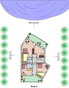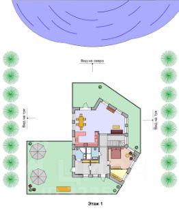 1ый этаж: 3 входа, кухня, зал, 2 спальни с гардеробной, 2 сан.узла(душ), 2 огромные веранды с видом на озеро