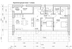- 2 спальни, кабинет, гардероб, ванная с туалетом, туалет, кухня-гостиная,