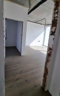 - отделка — гипсовая штукатурка в комнатах, в ванной и котельной — плитка, в туалете- плитка и обои, куплена душевая кабина,